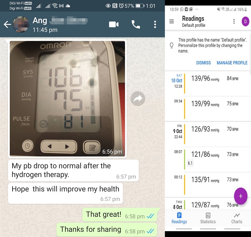 “Hydrogen Therapy improves my overall health and vitality. It reduces my stomach bloating and helps me to sleep more soundly. Before that I felt sleepy after lunch at work, but after Hydrogen Therapy, I never feel sleepy anymore even sometimes I sleep late at night and wake up early. I recommend Hydrogen Therapy to everyone who wants to maintain their health.”